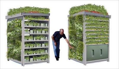 The concept of mobility is always an issue - so another small-scale garden greenhouse starts to attach to vehicles - such as this mobile greenhouse spotted in Brooklyn. A bit silly and obviously not a solution, but a visible example to create awareness of food production in urban areas - and more accessible than rooftops and distant farms.