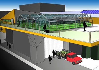 While the flights of fancy that drive many of the concepts of vertical farming are quite breathtaking, there's a subset of these projects that, while not quite ready for the pages of design magazines, have much more applicability for building-integrated agriculture in new construction and retrofits. A simple and much discussed example that has been around for years is the rooftop greenhouses on Eli Zabar's Vinegar Factory in Manhattan (dare I say one place where vertical solutions may be appropriate due to density).