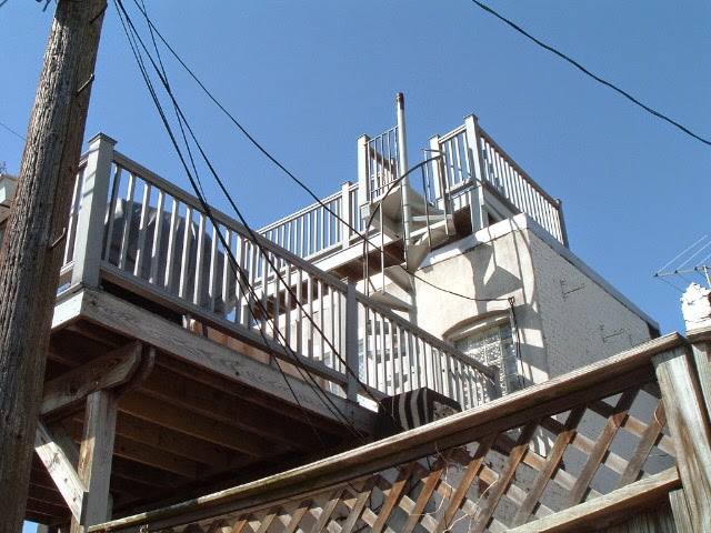 Newcomers are easily recognized by their extensive row-house roof deck structures. Traditionally Baltimoreans never went on their roofs other than to repair leaks (photo: Philipsen) |