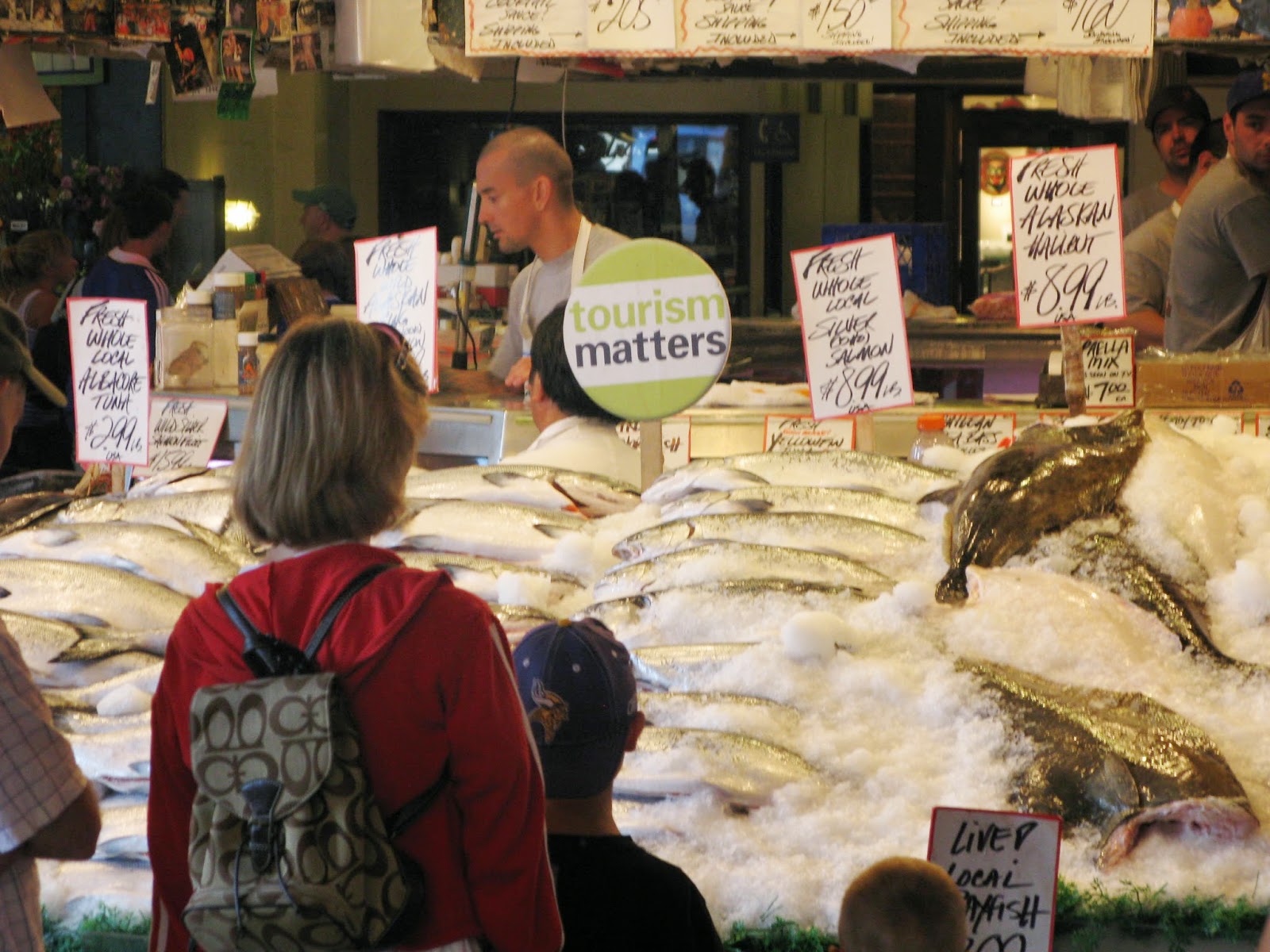 Fish stand at Seattle's Pike's Market indicates that "tourism matters". It does. |