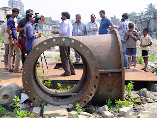 In the intervening period I've been in Mumbai, visiting Ben Parry, the artist and researcher who's doing a PhD with us at UWS and whose edited volume Cultural Hijack: rethinking intervention tells some important hidden stories about radical public art practice over the last 30 years or so. He's doing a very different kind of ambulatory practice in the hot, dry, dusty and very dirty world of Dharavi, working with families, workers and NGOs in the 13th Compound, which is the core of the recycling business. There, in intense conditions in packed makeshift factories, teams of ultra low paid workers reprocess waste bought from the brokers who buy from the ragpickers who systematically scavenge from the tips of Mumbai, and turn it into raw materials and products that can be resold by their bosses - cans, paint, glue, wood, fabrics, plastics, bottles, metal fabrication, side by side with bakeries, food shops and every conceivable item for sale. It's free market economics in an unbridled form, barely regulated, with little regard for the long-term health of the people living there, but offering plenty of opportunities for entrepreneurs and advancement.