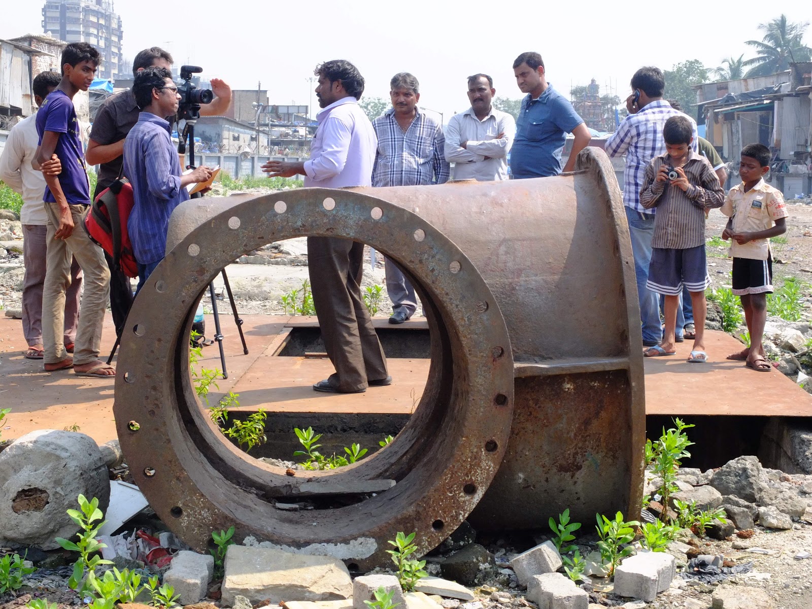 Dharavi, as one of the largest 'informal' urban agglomerations in Asia, has been written about and researched relentlessly. As an 'urban enterprise zone' it has become globally known and regularly attracts the attention of researchers seeking to understand the dynamics of Asian megacities, models of entrepreneurship and issues in public health/development. Prior to demolition, the section along the pipeline had become a particularly iconic location, not least because tourists and photographers could stand on the bridge on the Mahim Sion Link Road and shoot telephoto portraits of the inhabitants without having to seek permission or venture further inside. It was also used as a location to produce cover shots for National Geographic and featured in Slumdog Millionaire. Ben's project, Reversing the Gaze, seeks to interrogate "his own outsider 'gaze' and that of others who come to extract knowledge about Mumbai's informal urban practices."