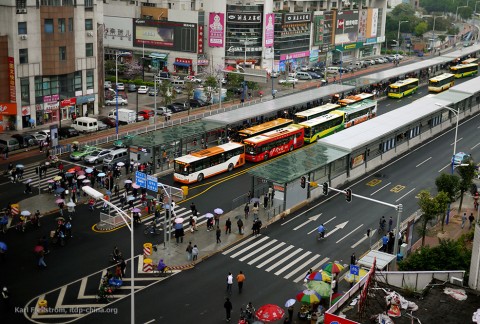 | Bus Rapid Transit corridor in Guangzhou, China. Credit: ITDP |
