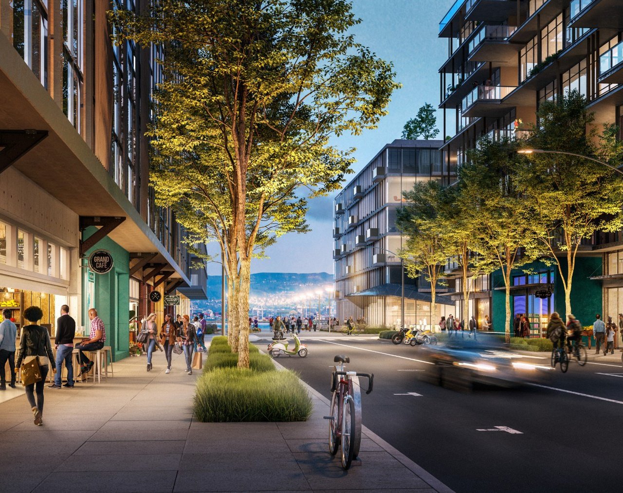 All buildings will be required to meet Gold or better LEEDv4 certifications, and the project may even build shared thermal energy plants. The plants would recover waste heat from commercial buildings for space heating and domestic hot water in residential buildings, helping to cut down on the site’s energy and water use.